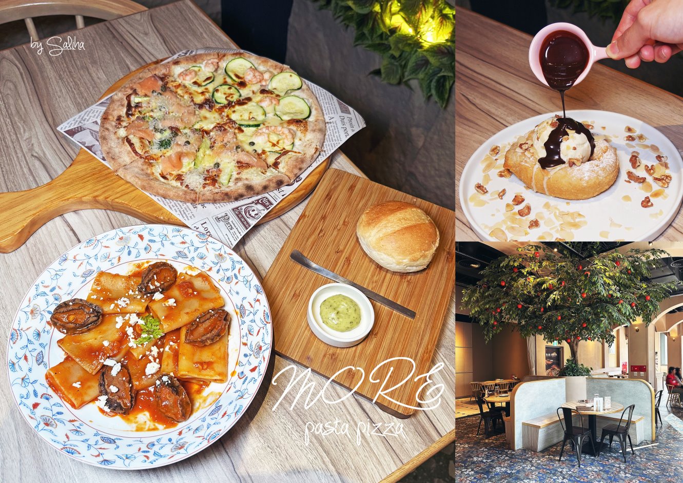 一直對《默爾義大利麵》那個蘋果樹下的座位很有興趣,應該說我對任何樹下的座位都很有興趣,難得看到一棵不會掉蟲蟲的室內蘋果樹,就好想坐在樹下吃美食唷!剛好這天家人聚餐選了《默爾》,雖…