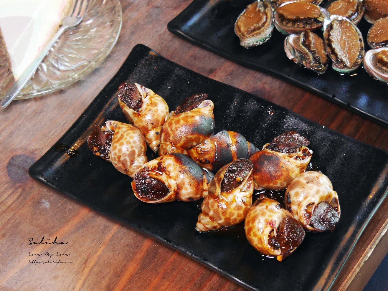 簡單點了一些點心小食小憩一下,還蠻有意思,這裡竟然有烤鳳螺跟鮑魚,好下酒菜風格,而且也不貴,一份150元,雖然跟蛋糕一點也不搭,不過別有情趣