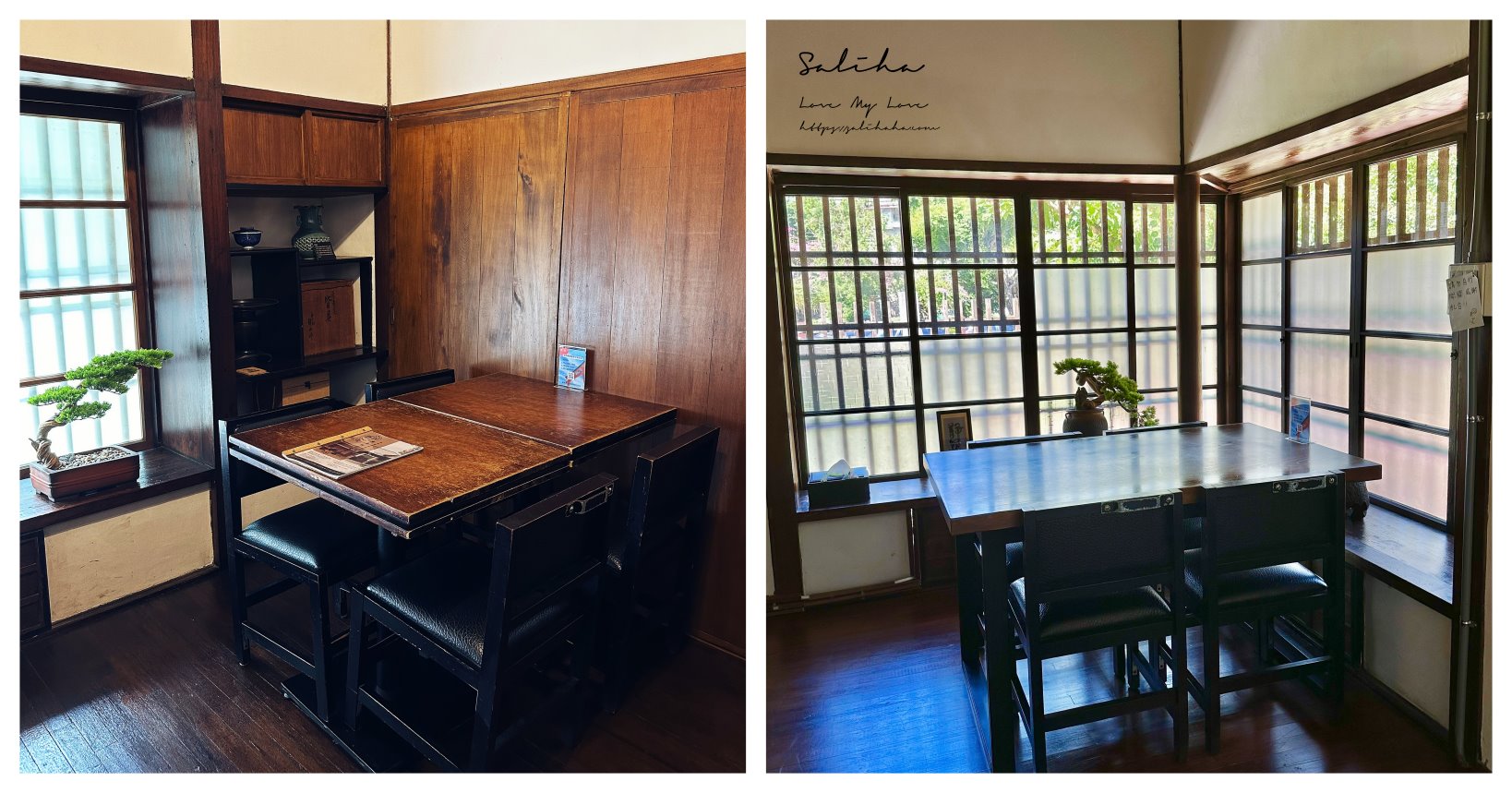 《靜心苑》內部仍是傳統的日式建築,入內需脫鞋並穿襪子,剛好我們早一步來,有拍到空景,後來陸續有不少客人用餐,雖然假日沒客滿,但現場也是放上不少預約牌,所以用餐前還是先訂位為佳