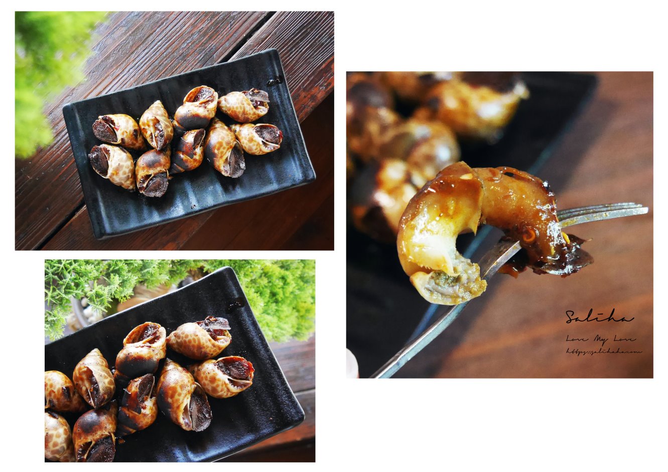 覺得在日式建築裡吃烤鳳螺好像蠻有新鮮感,而且我本來也愛吃鳳螺,嘴饞就點了一盤,沒想到蠻好吃耶,甜甜辣辣的,螺肉很緊實、很Q脆,吃完有些欲罷不能
