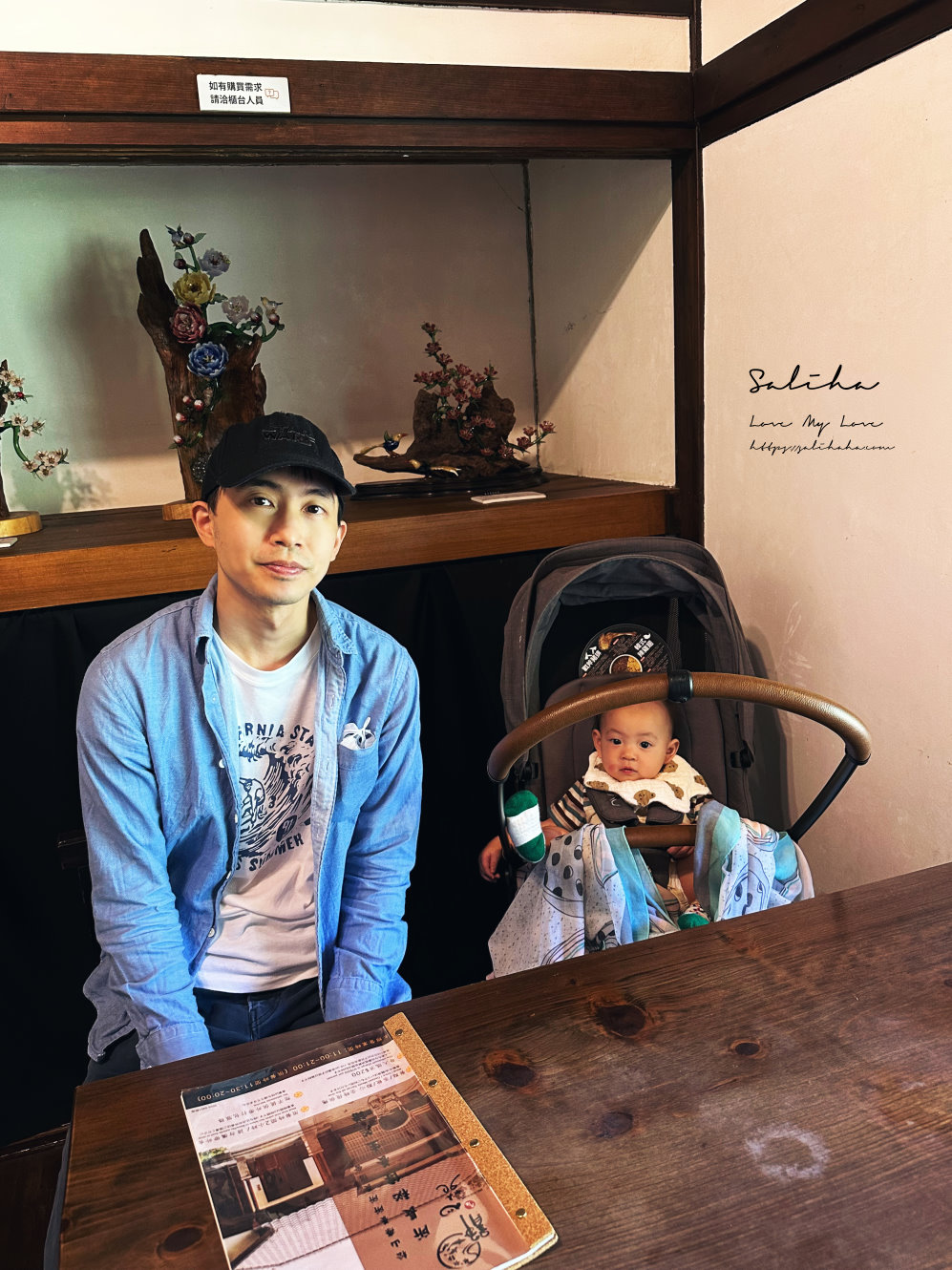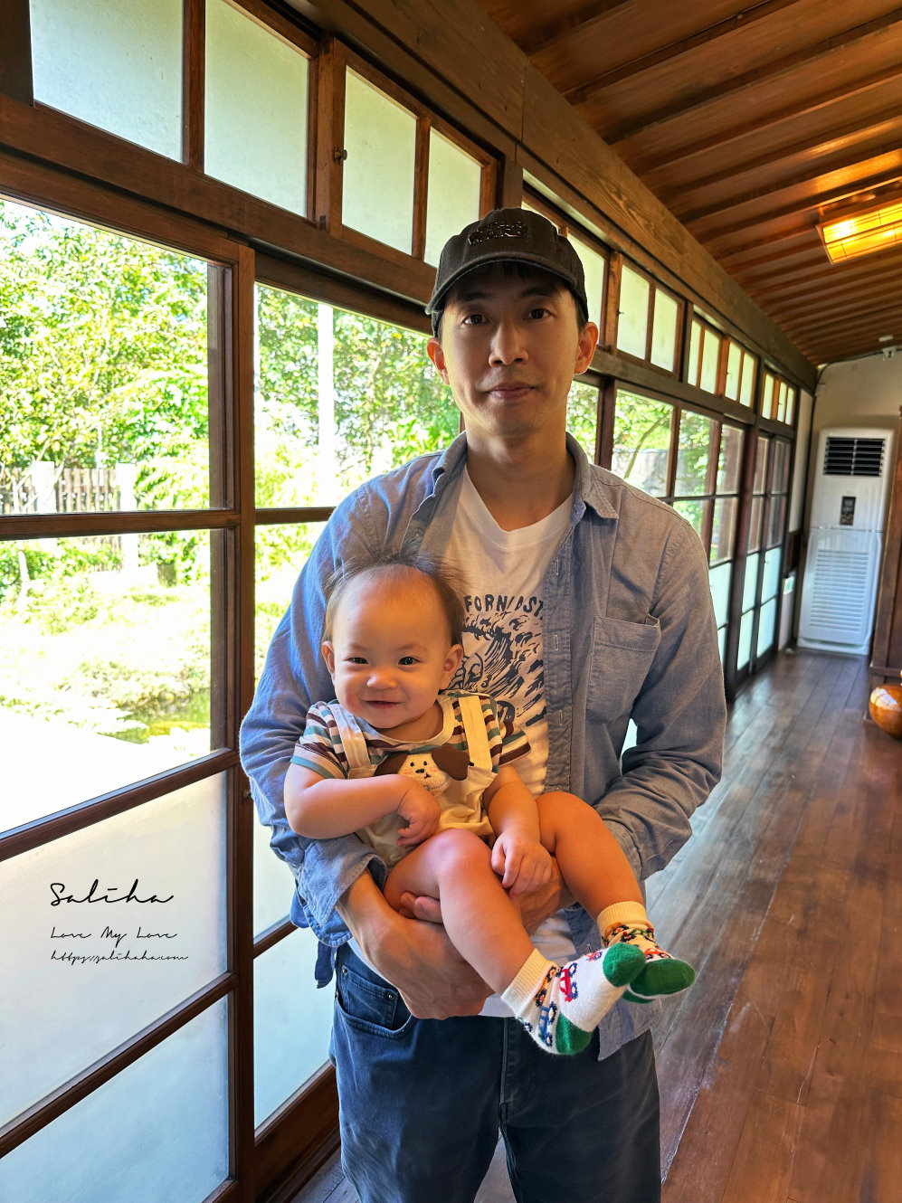 這天要去新新公園走走,找找看昆陽站附近有什麼不錯的地方順遊一下,貓仔便提議來靜心苑,也對喔,靜心苑放在我口袋名單已經很久了,今天正好來完成,不過這裡是百年建築改建的,又是日式老房子,進去都得脫鞋了,那可以帶嬰兒車嗎??貓仔去電問問,咦!竟然可以!?服務人員說如果不是重型的就可以,於是就訂位啦